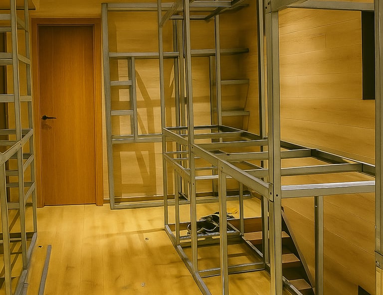 Parquet flottant pour un dressing et au murs des lames de parquet posé à l'horizontale