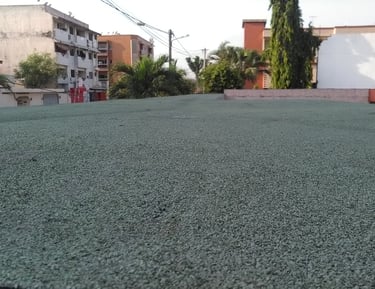 L'objectif était de revêtir la dalle quasi plate d'un shingle vert tout en maintenant les pentes d'écoulement d'eaux pluviales.