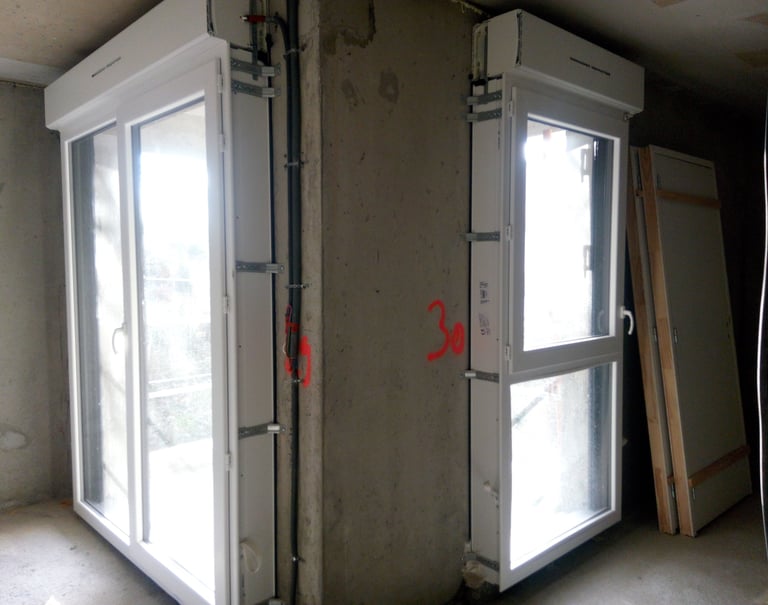 Une des expériences des "Ateliers de Christophe" la pose de porte-fenêtre en PVC de différents types assurant l'isolation thermique et phonique des pièces.