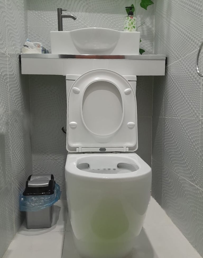 Sarah : Eh bien, figurez-vous que j'ai réussi à installer un lave-mains dans une pièce de seulement 80 cm de large. Avec une porte qui ouvre vers l'intérieur ! J'ai fait des économies sur l'installation, je n'ai aucune remontée d'odeurs, plus de bouchons, et je fais de sacrées économies d'eau. Et c'est parfaitement pratique pour mes visiteurs handicapés.