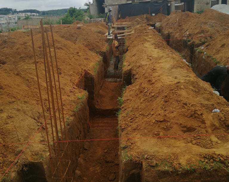 fondation pour bâtiment privé R+2 comprenant au RDC des magasins, le parking et aux étages des habitations